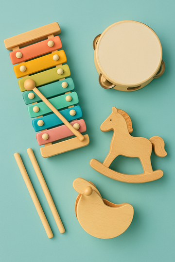 Entdecke unsere Kollektion musikalischer Holzspielzeuge – vom Xylophon bis zur Trommel – ideal für kreative Kinder mit Sinn für Rhythmus.