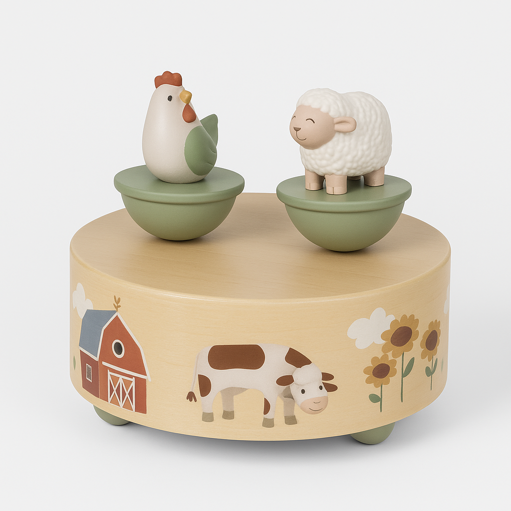 Holz-Spieluhr mit Bauernhoftieren