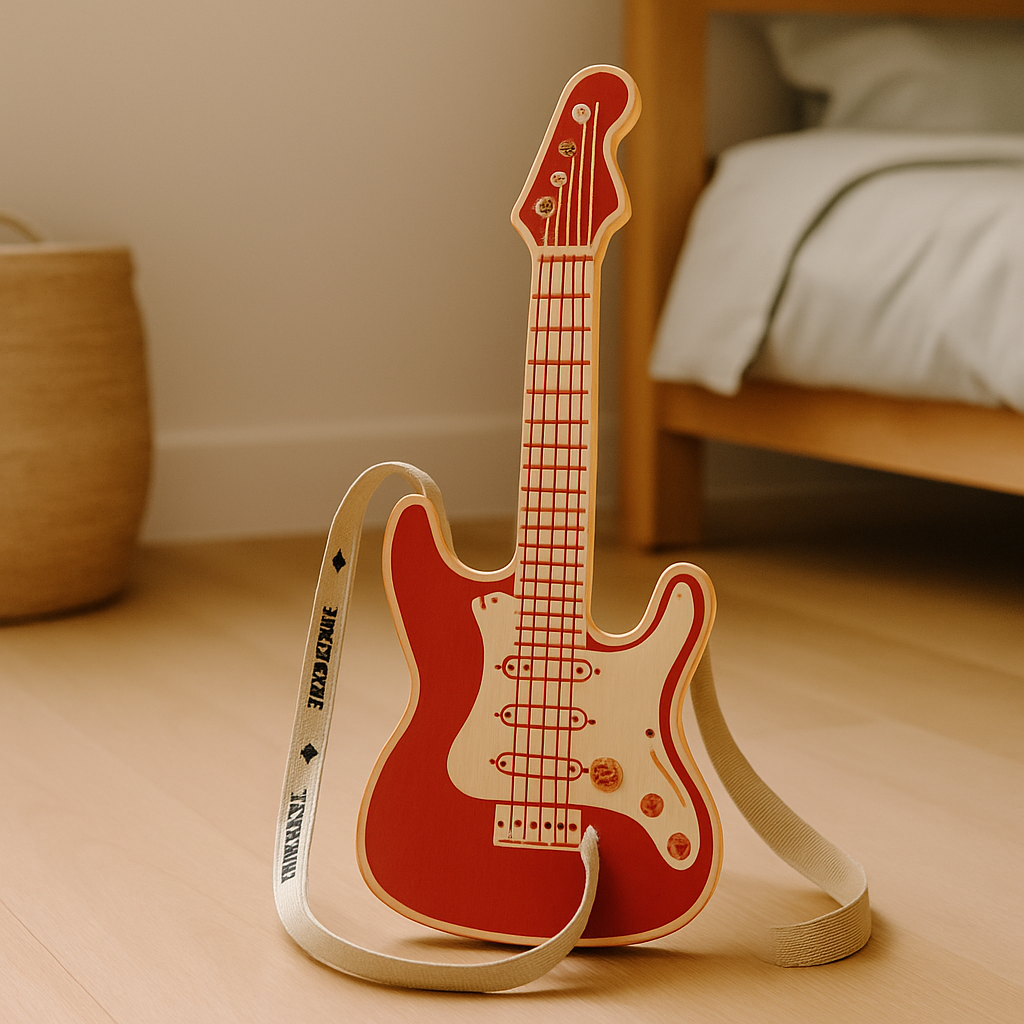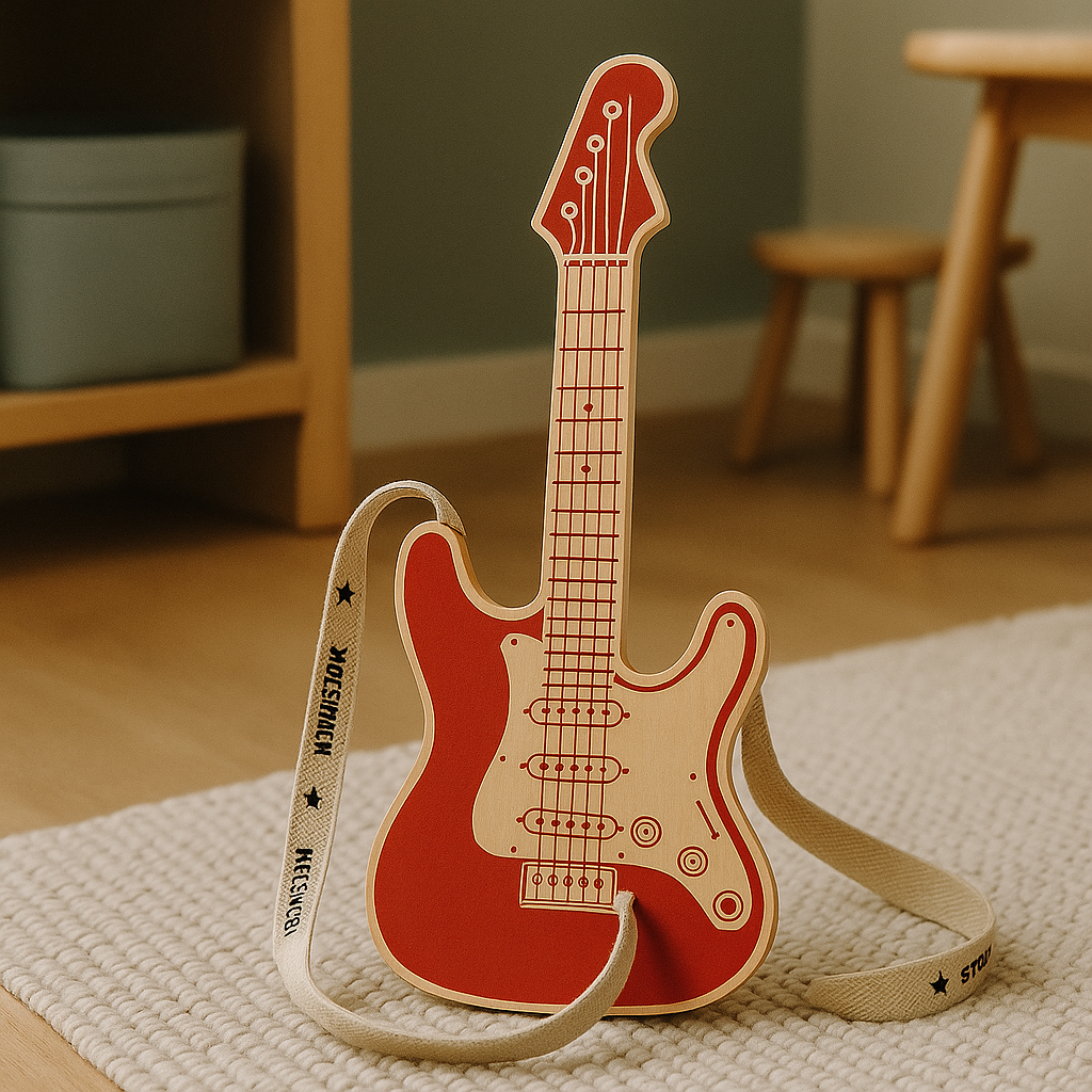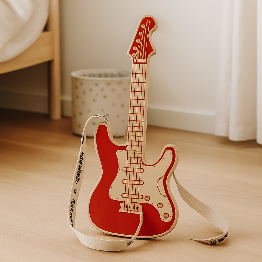 Mit dem robusten Tragegurt können kleine Rockstars bequem „performen“ – perfekt für Rollenspiele, musikalisches Lernen und kreatives Spielen.