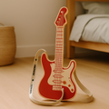 Klassische Gitarrenform in Rot/Naturholz-Optik