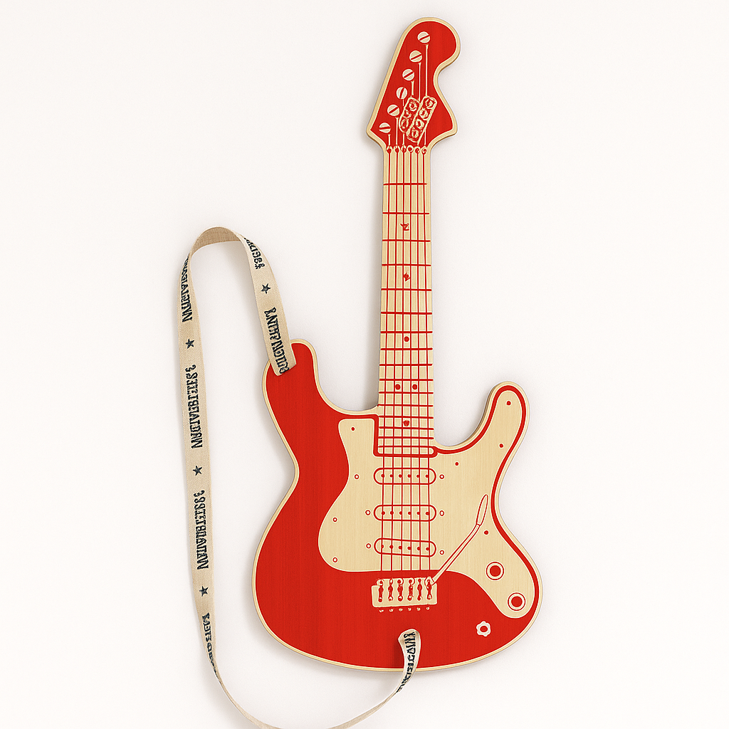 Diese stilvolle rote Holz-Spielgitarre bringt Rock’n’Roll ins Kinderzimmer! Inspiriert von klassischen E-Gitarren-Designs wie der Stratocaster, bietet dieses kindgerechte Instrument nicht nur coole Optik, sondern auch jede Menge Spaß beim Spielen und Nachahmen der Großen.